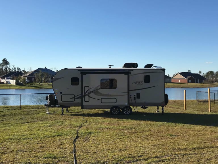 Hello, my name is Clint. My wife, Kayla, and I own a travel trailer for an interesting reason. After Hurricane Michael (Cat. 5) ravaged the gulf coast of Florida, in October of 2018 we had to purchase our trailer to live in until our home was repaired. We actually have never gone camping in it ourselves! Since then we have rented it out for other friends and family to use. We are just now getting to the place where we want to be in it again with our 2 kids, Faith (9) and Gage (2).