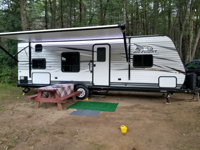 Brand NEW and Beautiful 2018 Jayco travel trailer. 1 queen bed 2 double bunks table bed and fold out couch bed fits 8 comfortably. Bathroom with shower. Kitchen with oven. 2 TV's.
