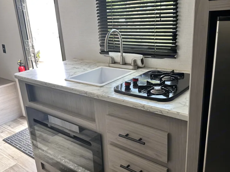 Pack your bags and get ready for an adventure in the all new 2023 Coleman 17b. This travel trailer is one of the best on the market, it truly has everything you need for a long road trip across the country. Welcome to your home away from home! Our 2023 Coleman Lantern 17B RV is the perfect option for your next adventure. With its lightweight design (under 3,000 lbs), this RV is easy to tow and maneuver, making it the perfect choice for those looking to explore the open road.This trailer requires a 2 5/16" size ball hitch. It also uses a 7-pin connector.Inside, you'll find all the amenities you need to make your trip comfortable and convenient. The kitchen is fully equipped with a refrigerator, microwave, stovetop, and sink, so you can cook your favorite meals on the go. The comfortable sleeping arrangements include a queen-size bed and a convertible dinette, providing plenty of room for up to 5 people. The rear bunks measure in at 72 inches of length, 29 inches of width and have a 300-pound sleeping capacity per bunk.The bathroom is equipped with a shower and toilet, giving you all the comforts of home while you're on the road. Additional features include a TV, 5,200 BTU electric fireplace w/temperature control, and plenty of storage space for all your gear.This RV is perfect for those who love the great outdoors. With its large awning, you can sit and relax outside, enjoying the beautiful views of your surroundings.What's includedFresh Linens and pillows provided!Other things to noteThis trailer requires a 2 5/16" size ball hitch. It also uses a 7-pin connector.