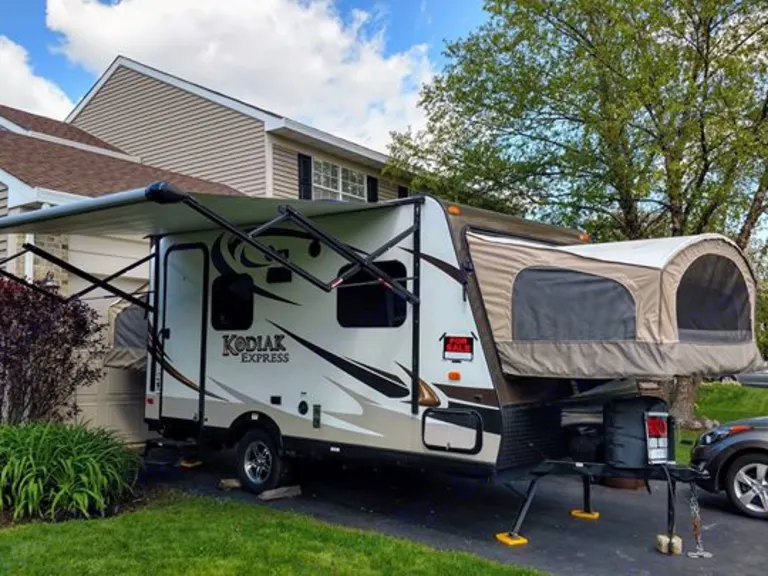 Want to enjoy nature but not ready to give up all the amenities of home? A bit nervous about pulling a lengthy / heavy trailer? This is the perfect trailer for you! Spacious, pristine and meticulously cared for 2015 Kodiak Express Ultra Light. Pack up the family and the pets because this one is ready to go! Best of all its light weight means you can tow it with nearly any 6-8 cylinder vehicle with a hitch!This 18' hybrid trailer expands to whopping 24' of living space once setup!!!!Check out all of our 5 star reviews on RVshare!!!!This camper is very popular and books quickly!Here are just a few of the features: