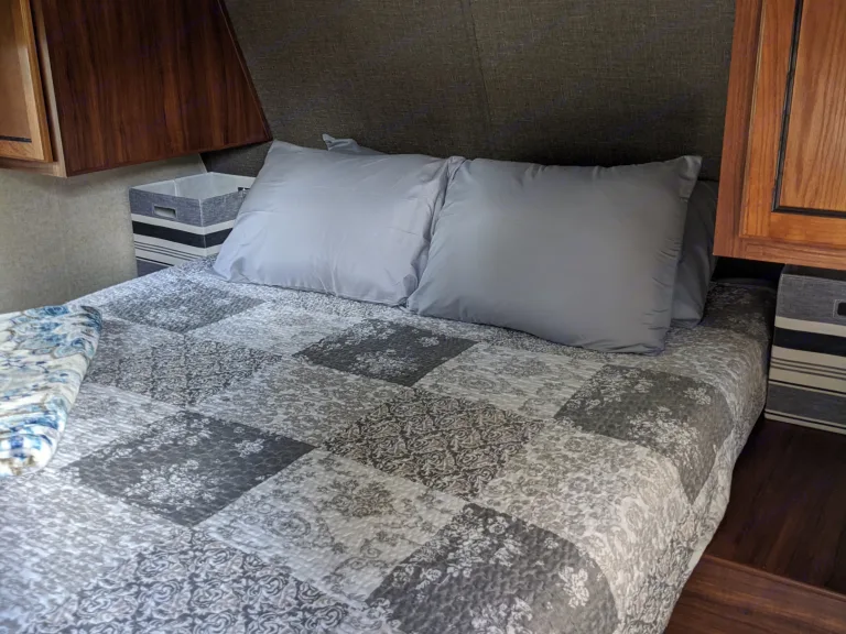 Can sleep up to 8 people with a maximum of 5 adults. Owner will deliver and charges are based on the miles. Owner set up and take down are included in the rental. We don't allow self delivery and set up. Automatic canopy with LED lights and one slide out. Queen size bed and 2 bunk beds come with bedding on them. Extra sheets provided for sofa and table beds. 8 pillows included. Sofa bed can sleep 1 adult or 2 small bodies, table bed can sleep 1 adult or 2 small bodies. Only a small person can sleep in top bunk, but anyone can sleep on bottom bunk. 8 sets of bath towels and hand towels. Toilet paper supplied. Stocked kitchen with cooking utensils, silverware/knifes, pots and pans, coffee pot, cleaning supplies, dishes, dish towels. Tv and DVD player provided(bring your own DVDs). Cards, Uno, phase 10 games. 4 camp chairs included. We ate new to renting and are still getting this site set up. I'll update and improve it at I go!What's includedLinens for all 3 beds, plus extra sets for sofa and table beds. 8 sets of towels, stocked kitchen, toilet paper.Other things to noteSet up and take down is included in rental. Owner only delivery and delivery fee is based on milage. You need to know exactly where the camper will be placed and what the hook up requires such as, amps for hook up or generator, if you will need water or waste removal or if it's a full hook up, etc.