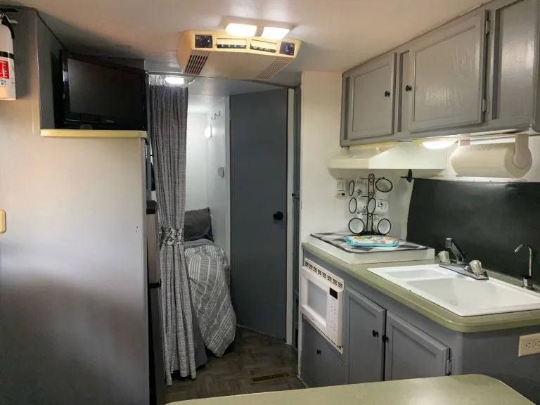 This camper is perfect for you and your family’s little adventures, as it’s easy to maneuver in tight places. This camper is perfect for a family of 5 or less. There is no awning but, we do provide the option to a 10x10 canopy, along with outdoor area rugs. After every guest the camper is cleaned thoroughly, to ensure you that your stay in our camper is comfortable and clean.