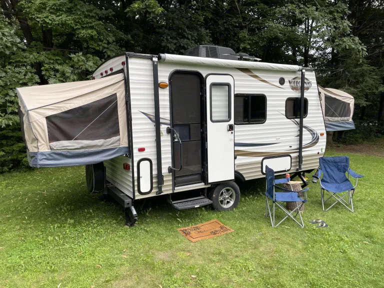 Astrid is a Viking and a fair, beautiful goddess she is indeed. A 2015, she has been lovingly and lightly used and looks brand new. At only 18' long and 2,500 lbs. unloaded, she's easy to tow and a breeze to set up when you get to your destination. Featuring front and rear fold-out beds (one queen and one full) and a convertible dinette in addition to a bathroom with a toilet and small tub/shower w/ skylight, Astrid comfortably sleeps up to 6 and offers loads of space for such a compact towing size.This rig is also loaded with components and extras. Fully equipped, it offers a 2-burner propane stove, sink, fridge (with small ice box), microwave, and range hood as well as a TV (with Hdmi port for your own Roku, Firestick, etc.), radio/CD player with indoor and outdoor speakers, dining table, and additional bench seating. Exterior features include an awning and an outdoor shower. Astrid offers heat (propane) and AC (with electric hookup only), but also has plenty of ventilation and light if you're roughing it or boondocking.It doesn't get any better than this. Let Astrid take you on a journey near or far in any season for the ultimate road trip or a camping destination close to home.What's includedAstrid's extras include: