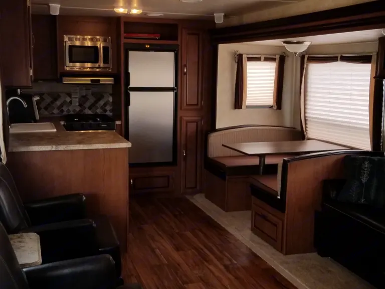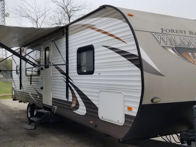 Spaciest 33 foot travel trailer with lots of cabinets and storage, large slide out, awning, queen size bed in private bedroom, roof A/C, remote controlled slide out, awning, stabilizer jacks, electric tongue. Lots of extras