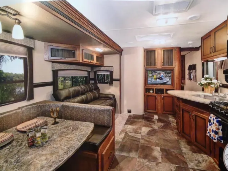 Fully loaded ready to camp. 2 slides. Reclining outdoor chairs, medium dog kennel, bbq pit, etc. Fully functional, sleeps 8 comfortably. TV, outdoor kitchen, radio with indoor/outdoor speakers, normal tt bathroom. Master is in the front and bunk in the back. The living room couch pulls out and the bunk room couch folds out. We love camping, but just don't have time anymore. 2 A/C's, heaters, and hot water heater work perfect. Nice outdoor kitchen with an extra fridge.What's includedLinens, towels, toilet paper, paper plates, pots/pans, cooking utensils, etc.Other things to noteNo smoking inside, keep the place clean and tidy.