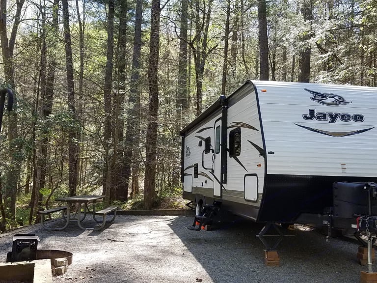 If this listing is booked for your dates please message us, we have other similar.Welcome to the 2018 Jayco bunkhouse with queen bed, 2 double bunks in back, Large U shape dinette slide that makes a double bed. Full Bath with Large 30" X 30" walk in shower, full kitchen. Roof A/C and heat. TV in living area, outside kitchen, and outside shower.This camper is half ton tow-able, and comes in at 5465 lbs dry, and can haul another 1535 lbs, for a total 7000 lbs. Towing only allowed for drivers experienced with towing trailers, and correct vehicle. Trailer comes with load leveling / stabilizer hitch for a better towing experience. Must have 7 pin round plug and brake controller to tow. Don't worry if you do not have this cause we do deliver to all surrounding locations.Our campers are pet friendly, and come stocked with propane, outside gas grill, 4 place dinnerware sitting, extra disposable dinnerware, coffee pot, pots & pans, paper towels, toilet paper, trash bags, broom, clean sheets and blanket on beds, Set of 4 towels & wash cloths, can opener, grill lighters, bottle opener, and cooking/grilling utensils. 4 camping chairs, outside mat. This is all included with your rental. All you need is your clothes and favorite pillow, maybe a blanket, and food. Thanks for looking, and God bless.Pick up will take around an hour, please plan for that time.For delivery check before booking for availability due to work schedule.Looking for something smaller we have 2 other campers listed. A folding trailer, a 17ft bunkhouse.Near: Helen GA, Blairville Georgia, Cleveland Ga, Gainesville Ga, Dawsonville Ga, Cumming Ga, Lake Lanier. Chattahoochee National forest, Appalachian Trail, Appalachian Mountains.