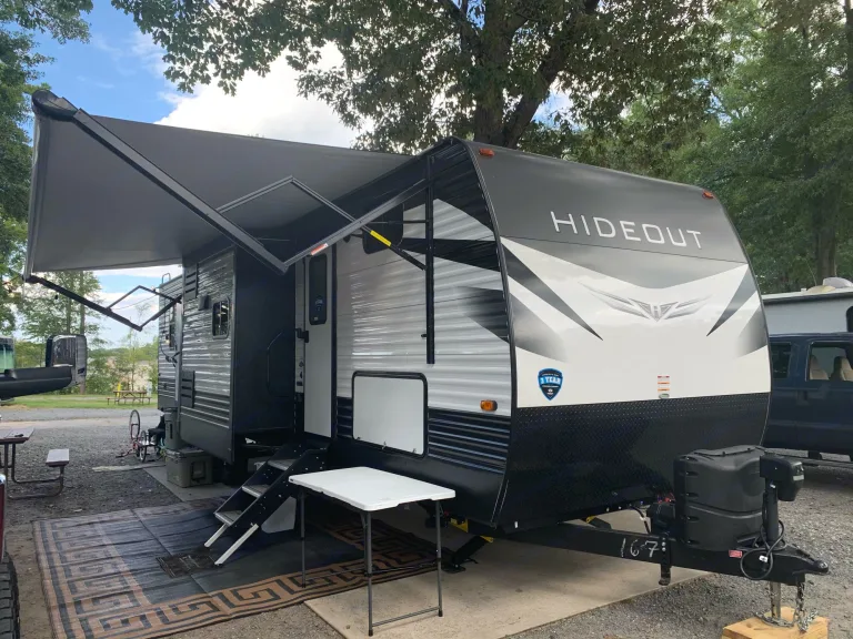 Brand spankin’ new 32ft bunkhouse with 3 slides. Tons of space and great amenities include residential style kitchen sink, 3 burner stove, 50” flatscreen TV, outdoor kitchen and outdoor shower plus so much more! What's includedCamping chairs, toaster oven, k-cup coffee maker, instant pot, pots/pans, cutlery, silverware, plates, cups, bowls, assorted cooking utensils, electric griddle, 2 hammocks, folding table, and grilling utensils. LINENS NOT INCLUDED.RecommendationsIf you plan to tow camper yourself we recommend using a 2500/250 truck or larger. We will provide weight displacement hitch with sway control bars.Other things to noteLINENS ARE NOT INCLUDED, please bring your own towels, sheets, blankets etc…