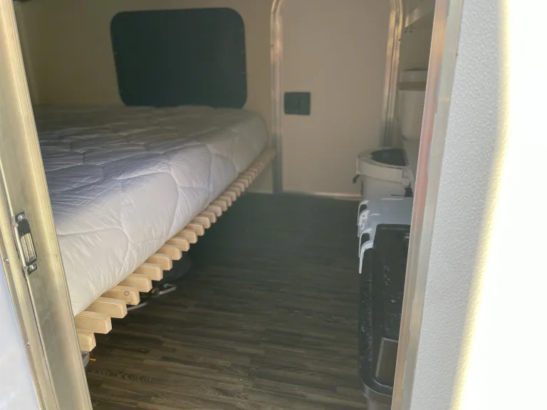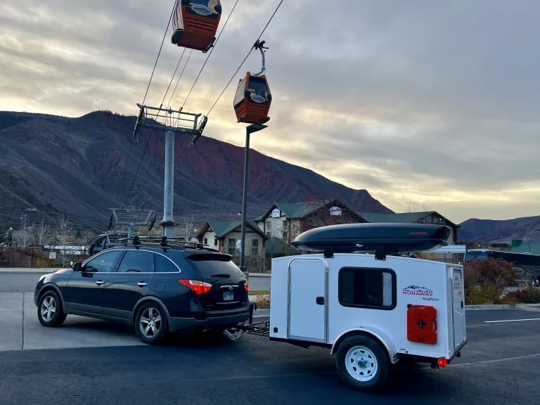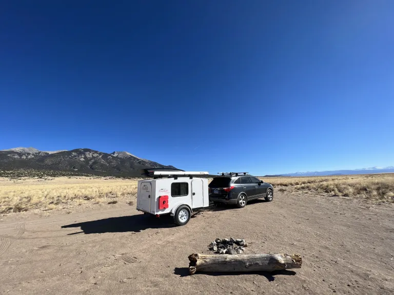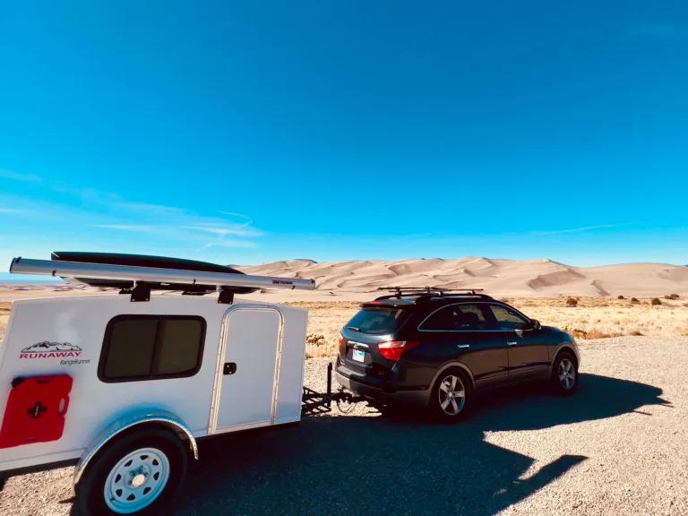 This camper can be towed by almost any vehicle, and is perfect for weekend getaways to month long road trips. It requires a 7 pin hookup. We have taken this trailer on several trips and even some backcountry (good dirt roads), even though it is not designed for off road use. It easily sleeps two adults in the queen bed, with room to spare for our 100 pound dog. Storage available in rooftop cargo box or underneath bed frame (11 inch clearance). The Zen Den has AC ad heat, interior LED lighting, extendable awning, black out shades with zero light seal, and a tongue storage box. Two gas tanks and water tanks are mounted to the exterior. The camper can plug into shore power and has solar charging. The battery bank will also charge while the vehicle is driving and 7 pin connector is connected. What's includedA queen size dual sleeping bag