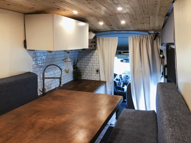Custom built 2017 Ford Transit 250 High Roof. Features a convertible bed/dinette setup, ample storage, running water, and plenty of power for your next off-grid excursion.Other things to note$35 for late return fee after 2pm. If returning after 8pm you will be charged for an additional night.
