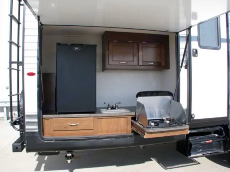 Perfect travel trailer for a family. Bunk beds for kids with their own private room. Queen size mattress in the master. Working A/C and heat. Four burner stove and small oven. Also has a out side kitchen with propane double burner, sink and mini fridge. The dinette and couch both convert to extra beds. What's includedCamp chairs, two zero gravity chairs, and kitchen utensils. Other things to noteNo smoking, pets are ok :)