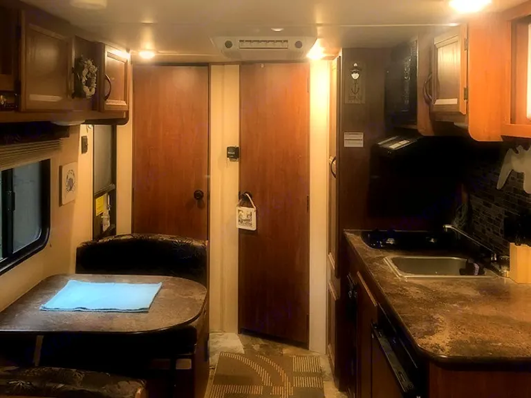 The Seagal is a like new 2015 bumper pull RV. Featuring an upgraded Super Plush queen-sized mattress, sink, stove, refrigerator, microwave, toaster oven, shower/bath, AC, heat, TV/Blu-ray and a travel BBQ pit! There is more than enough storage space under the bed, in the bedside closets and the inside storage closet, to bring and stow away all of your gear! This is a perfect couples camper, but can sleep 3 comfortably! This lightweight little powerhouse is perfect for pulling with an SUV or small truck! Its smaller size makes it perfect for road trips or just an overnight stay! It has a quick setup (20mins), so most of your time is spent relaxing and not fretting over placement.****Where we do allow pets, there is a nonrefundable pet fee of $150 for up to 2 pets, $50 for each addtional pet after the first 2*****Note: This Does NOT have a generator so, hook ups are necessary, unless you can provide a generator.Other Notes: