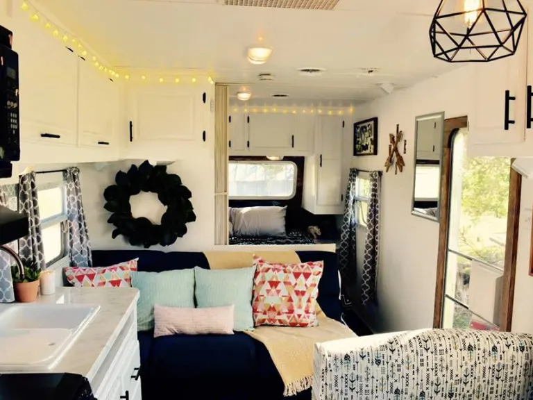 Newly remodeled! Enjoy your adventures in this light, bright and airy travel trailer! 27' trailer that can sleep 7. There is a queen bed, twin over full bunk bed, futon and the table collapses to a bed. A/C and heat.