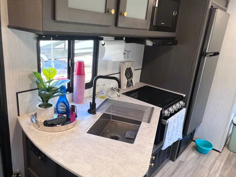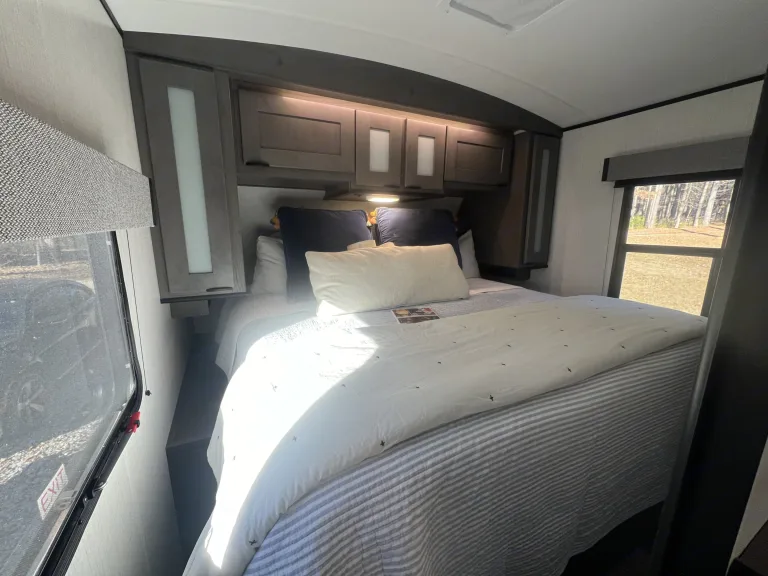 Thanks for checking out our travel trailer! Plenty of storage space underneath for gear. Sleeps 8-10. King size bed in master bedroom with smart tv. Bunkhouse with smart tv. 1 bathroom with shower. Dinette and pull out sofa. Gas stove and 12v fridge. Kitchen stocked with essentials for basic cooking. Outdoor kitchen with large gas griddle, countertop, cabinets and refrigerator. Linens available. What's includedProvided: 4 camping chairs, camping table cloth, kitchen and grill essentials. Linens provided RecommendationsVisit Point Mallard Aquatic Center, Cooks Museum of Natural Science, Space and Rocket Center, Lewis Smith Lake, Montesano Mountain, Guntersville State Park.Other things to noteABSOLUTELY no cats. Dogs are permitted on a case by case basis with a pet deposit.