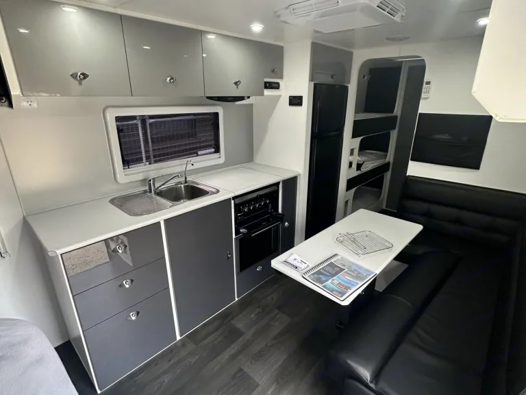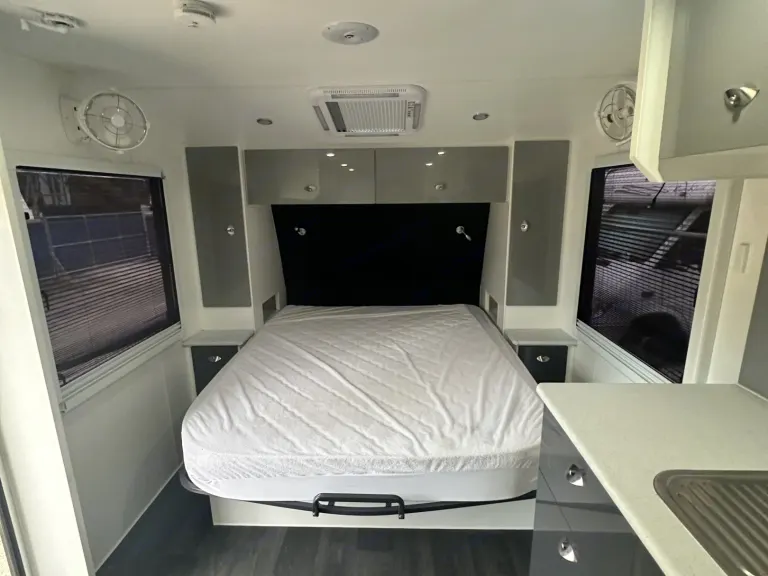 21ft Prime RV Family Base Camp Caravan – Luxury 6-Berth HireIdeal for family getaways, festivals, staff quarters & temporary accommodation (insurers welcome ).Queen island bed + triple bunks w/ USBs & 12v fans
