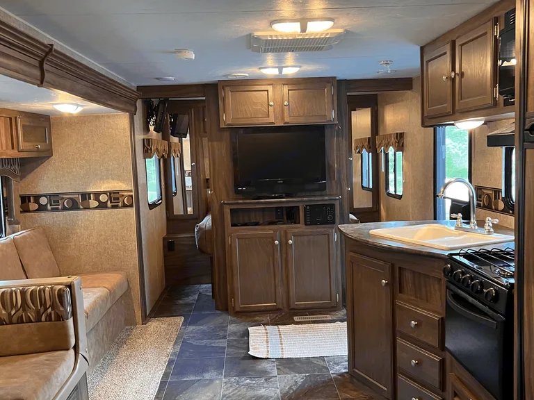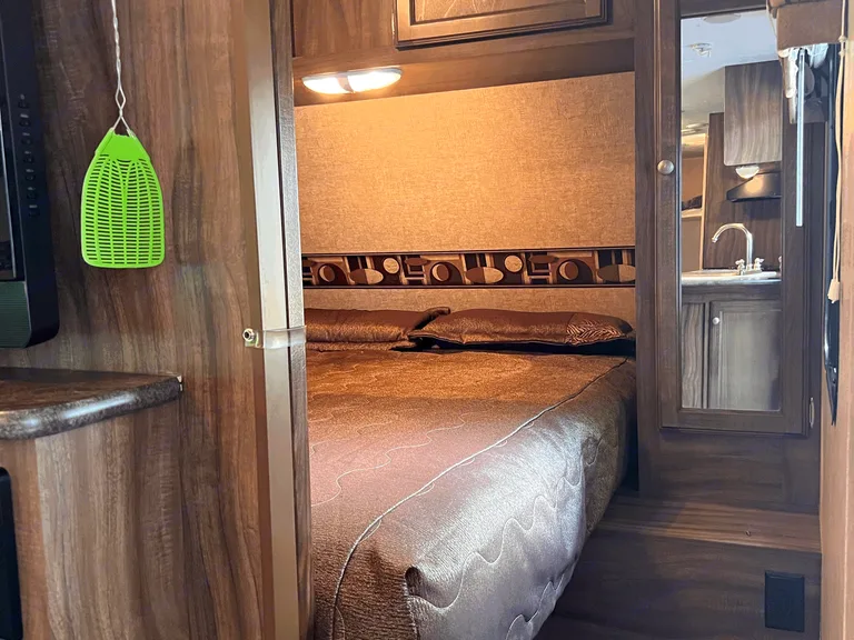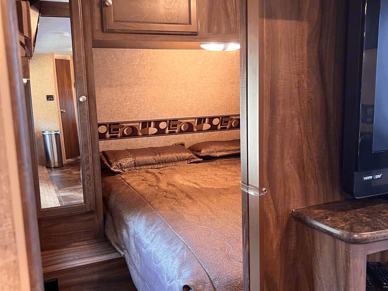 As you can see in the pictures it has a private bedroom with a comfortable queen bed. Small TV in bedroom and plenty of space for your clothes.