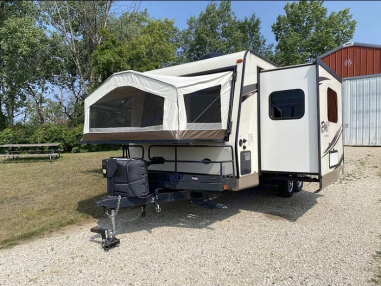 Bike rack with built in bike lock21ft. 24ft overall when closed. about 28ft with both beds open.What's includedclean Linen Included