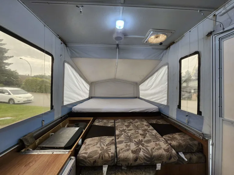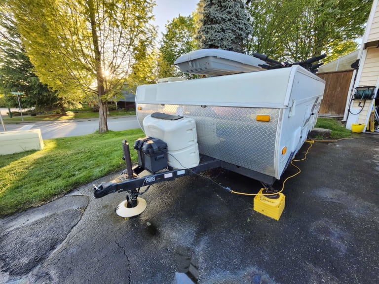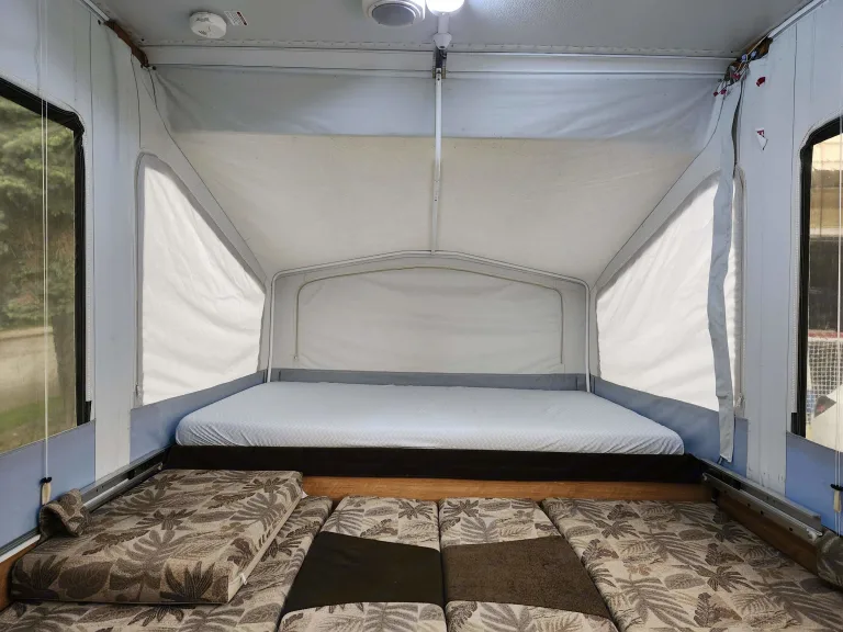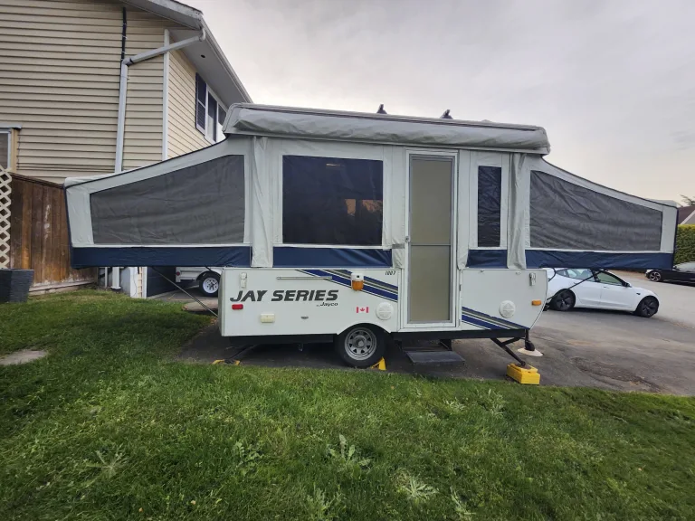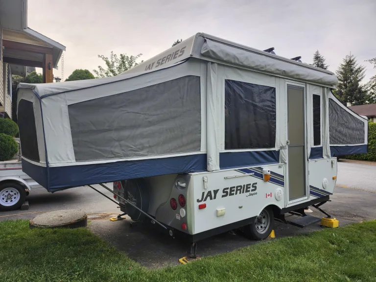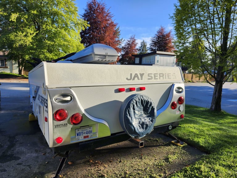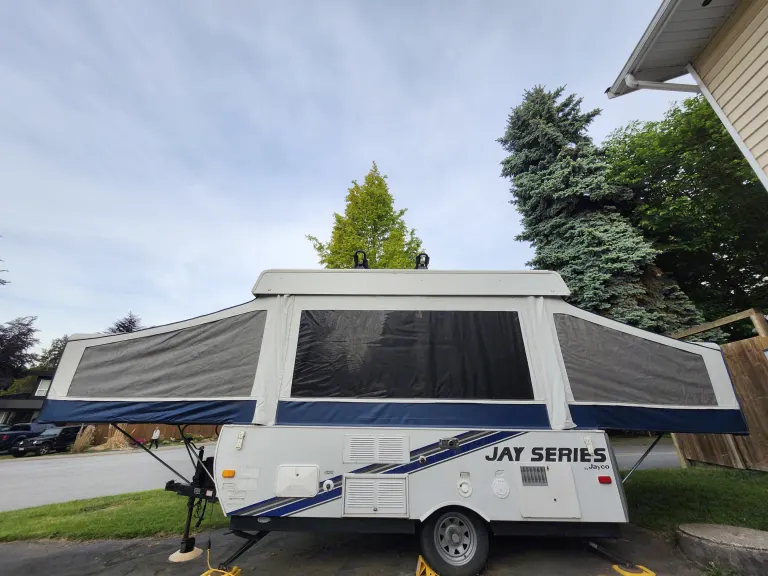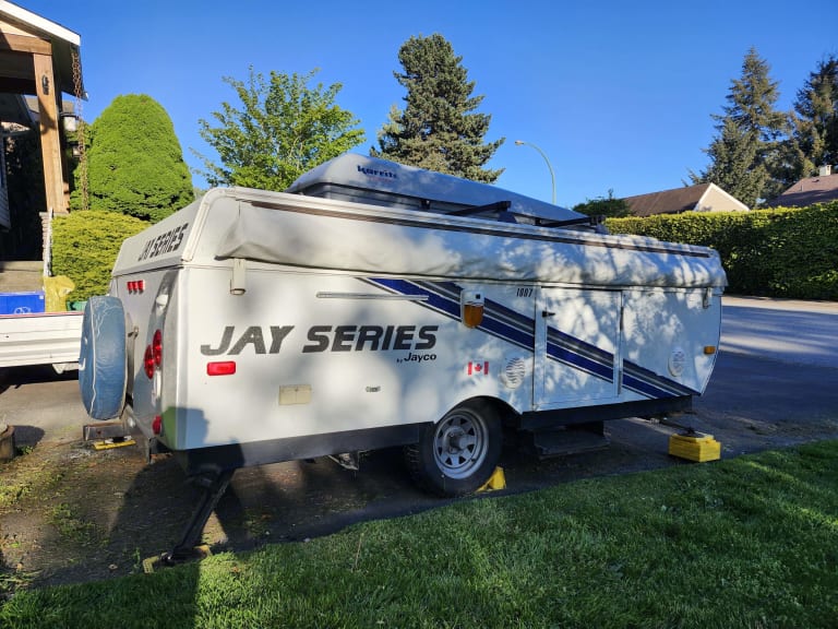 Jolly Jayco Jay Tent Trailer comfortably sleeps 4. Great for providing extra beds at your own place for guests, at a local farm wedding, or exploring the local campgrounds. The Tent Trailer comes equipped with a king bed, double and two twin bed (if dinettes are converted to beds) for a total of up to 4 beds. There is a sink, propane gas furnace/water heater, maple cabinetry, 3-way refrigerator, radio and a reasonable amount of storage space within the trailer.What's includedThe listing comes with fresh mattress covers on the two main beds. Please note there are also additional twin beds (x2) if the two dinettes are converted for a total of 4 beds. Upon request, we can provide additional camping supplies such as: kettle, cookware, utensils, and water cooler.RecommendationsWelcome to Beautiful British Columbia where many outdoor adventures await. We are conveniently and centrally located near routes that will take you to your camping destination whether it is a private site or any of the Provincial Campgrounds in the Greater Vancouver area or beyond. Other things to notePets welcome! No festivals and no smoking.