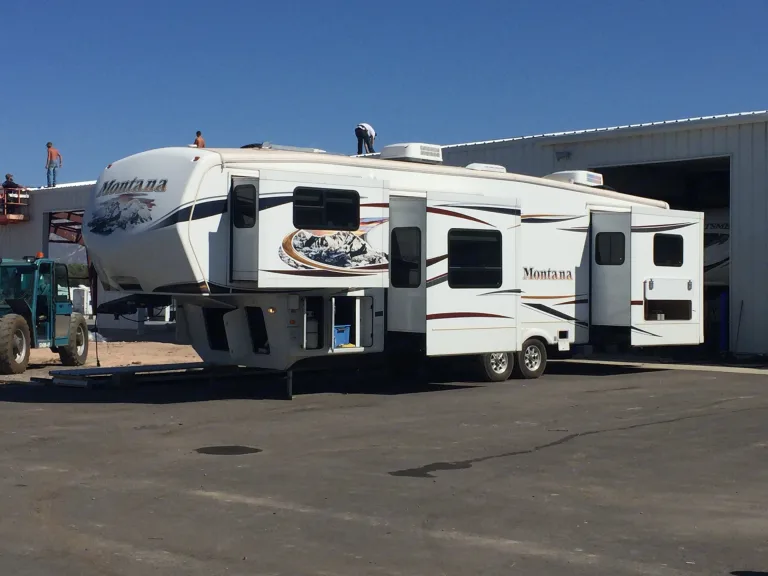 Cozy fifth wheel with 5 slides. Full kitchen with full double door fridge and freezer. Updated king size bed in the main bedroom. Has a queen pull out bed in the front. You’ll enjoy this beautiful fifth wheel.
