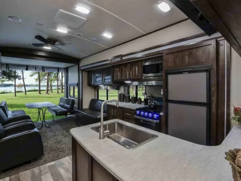 With its single slide and 16' 3" garage, this Fuel toy hauler proves to be an exceptional unit for bringing along your favorite outdoor toys and camping equipment. Because this unit can sleep eight people, you will also be able to bring along your family and friends to join in on the fun, and the full kitchen will give you all of the tools you need to keep everyone filled with delicious meals throughout the trip. Whether you're relaxing in one of the dual plush chairs, in front of the picturesque bay window as you catch up on some reading, or you're lounging on the sofa as you watch a movie on the LED TV, you will feel comfortable no matter where you are.Fuel your passion for the RV lifestyle with the Heartland Fuel travel trailer or fifth wheel toy haulers! As a fresh, fun, and innovative option for those who like to be on the go and always adventuring, the Fuel toy hauler gives you a value-packed and spacious unit to accompany you as you explore the great outdoors. As the #1 manufacturer of toy haulers in the industry, Heartland knows just what you want when it comes to high-quality features and amenities, which is why they have included so many beneficial details in each of the Fuel toy haulers, like the cold crack resistant floor, the storage throughout, the stainless steel appliances, and residential shower with a seat. You will also find the 30 gallon fuel station and the heated and enclosed underbelly with forced heat to come in handy while you are camped out in the back woods and need to gas up your ATVs or dirt bikes.What's includedYou will be provided with necessary water, electric and sewer connections.