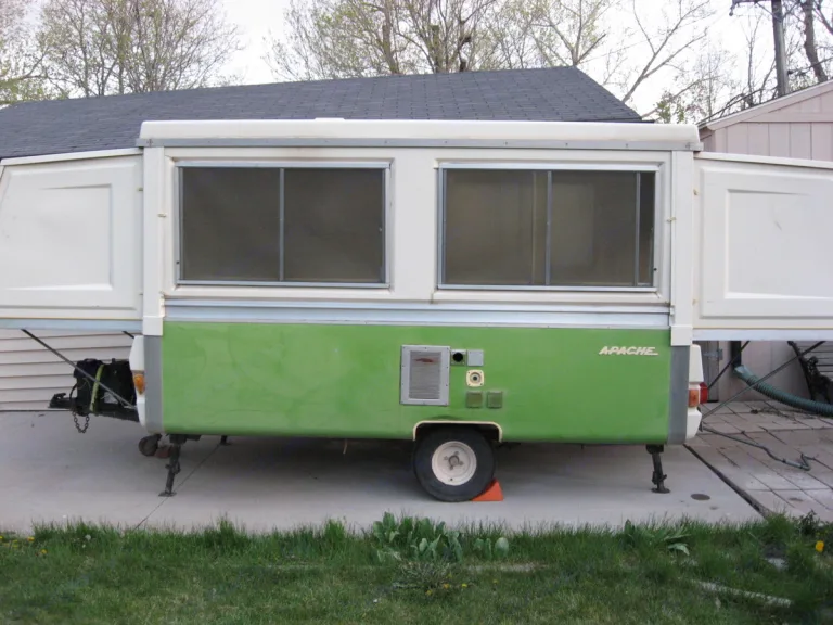 1976 Apache Royal camper that can sleep up to 8 people. This is the original hard-sided pop-up camper and is still in very good condition with updated curtains.