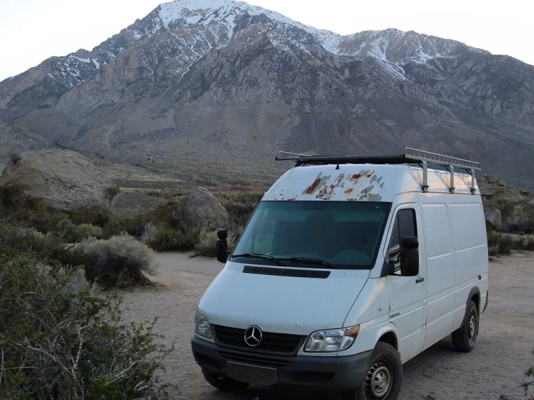 This Sprinter van is an old girl with a homemade camper build out. She lived her early years as a work van and now enjoys her golden years transporting adventurous humans to amazing places. Most recently, she carried 2 people 80k miles all over the US in search of great climbing conditions.This van sleeps 2, has electrical outlets (powered by solar panels), lots of storage, lights, a refrigerator, ceiling fan, and a boat sink. Recently, a lot of work was done on the engine to give her many more miles and years of life. The van runs on diesel and gets surprisingly good gas mileage - about 20mpg.The van tops out around 75mph and is happiest on long highway drives between adventures. It's not made for off-road travel, but the ground clearance is decent for traveling on rough or dirt roads.Pick up/check in is after 5:00pm and drop off/check out is 11:00am.