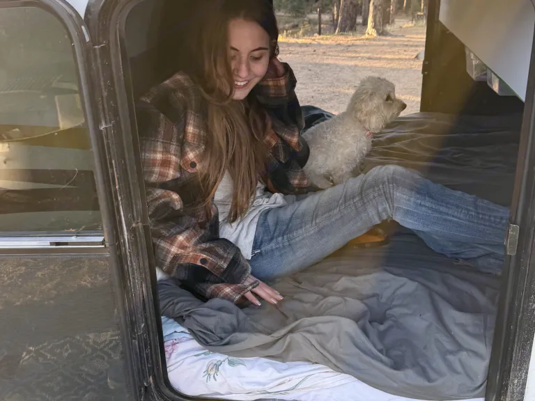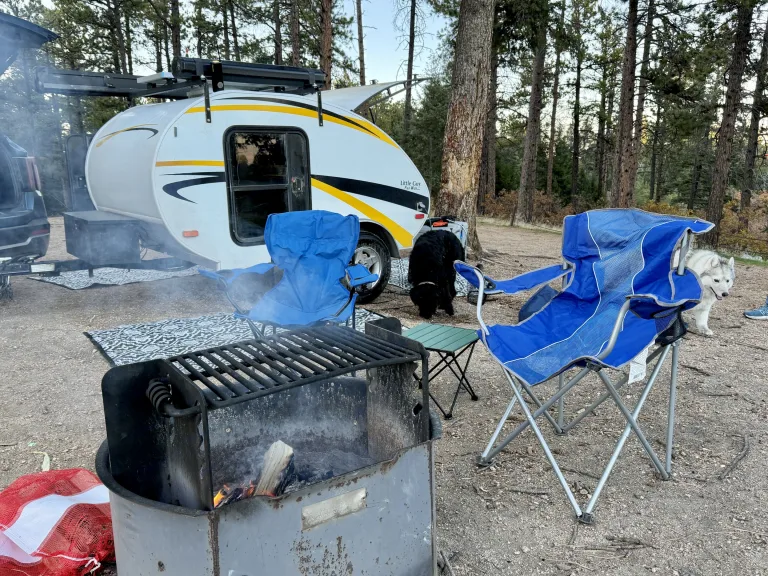 Hi! We’re Erin and Joe! We are travel lovers who are just as happy exploring abroad as we are hitting the open road with our three dogs. We built our teardrop camper for the kind of adventures we love most: quiet nights stargazing by the fire, followed by climbing into a warm, comfy bed. We both work remotely, so with our satellite internet, we can turn any beautiful place into our office for the day. Whether it’s a mountain pass in Colorado, a red rock canyon in Utah, or a quiet lake in Idaho, we love finding new corners of the world to call home—if only for a night or two—and we’re excited to share that experience with you.