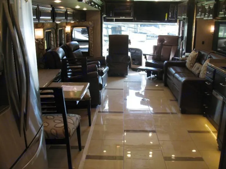 Newmar Mountain Aire 4519 Bath and a Triple Slide. Immaculate condition, stored indoors, no smoking, no pets. Freightliner Chassis, Cummins 500HP ISX engine, Allison 4000 6 Speed Transmission, 12.5kW Onan diesel generator, 8AGM Batteries, 50-AMP Service, 3000 Watt Inverter, SilverLeaf Multiplex Electrical Management System, Oasis Hydronic Continuous Hot Water and Interior Heat Management System, 3 AC Units, Valid Active Air Leveling Control System, Comfort Drive Steering System, In-Dash Navigation System. Spacious full-wall slide plus two additional slides. Auto Hydraulic Leveling Jacks, Upgraded Girard Nova Power Awnings with LED Lighting, LED Lights Under Driverside Slideouts, Winegard Rayzar Auto Antenna, DirecTV Satellite Dish, and Exterior Entertainment Center. Flexsteel Ultralux Leather Sofas and Front Seats. Heated Front Seats with Power Lumbar, Recline, Footrests and Queen Sized Passenger Seat. Carmel Glaze Cherry Cabinets, Radiant Heat Tile Floors, Power Day and Night Shades, Whirlpool Washer and Dryer, Whirlpool Refrigerator, Induction Cook Top plus Convection/Microwave Oven, Central Vacuum, Dishwasher, Combo Dinette w/Buffet Table, King Sleep Number Premier Mattress, Sleeper Sofa with Queen Air Mattress, RV Sanicon System.