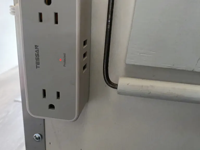 The solar panels and alternator charge a battery and you can easily charge devices and use the fridge off of two outlets and two USB ports at the foot of the bed.