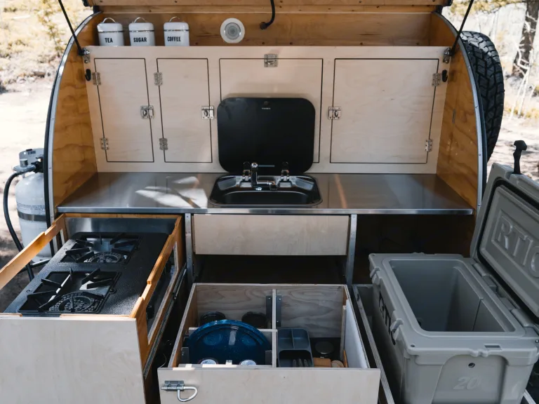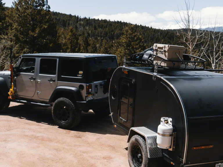 The Wibtech Alpha Black is designed with intuition and functionality in mind. Camping is about the outdoors and Re-creating yourself. Therefore, you want a camper that is designed to be used with minimal effort of mind while you’re out living your best life.Whether you are going on a short trip to the mountains or a long overlanding trip across the US, look no further. We built this camper from the ground-up and we think you will enjoy the many features we offer. Start your adventure today, spend the day outside doing your favorite hobby and turn in for the night and sleep like a baby in our 7” queen size memory foam mattress (linens not included). It comes with a TV with DVD/memory card and USB capability, Bluetooth speakers, USB connections to charge your phone, a ceiling fan, plenty of storage.The galley hatch kitchen is stocked with everything you need for your trip, you just need to load your groceries and personal items and you are set to go. It comes with a two-burner stove and propane tank, open space for cooler, stainless steel countertop with a sink in the middle, a water tank and a gray water tank. Dishes are available as an add-on.Our camper is equipped with a Timbren Axle-Less independent suspension, oversized tires with a full-size spare, stabilizer jacks, porch lights, 6x4 awning and a roof rack to add your favorite toy. A 2-inch hitch ball is required.