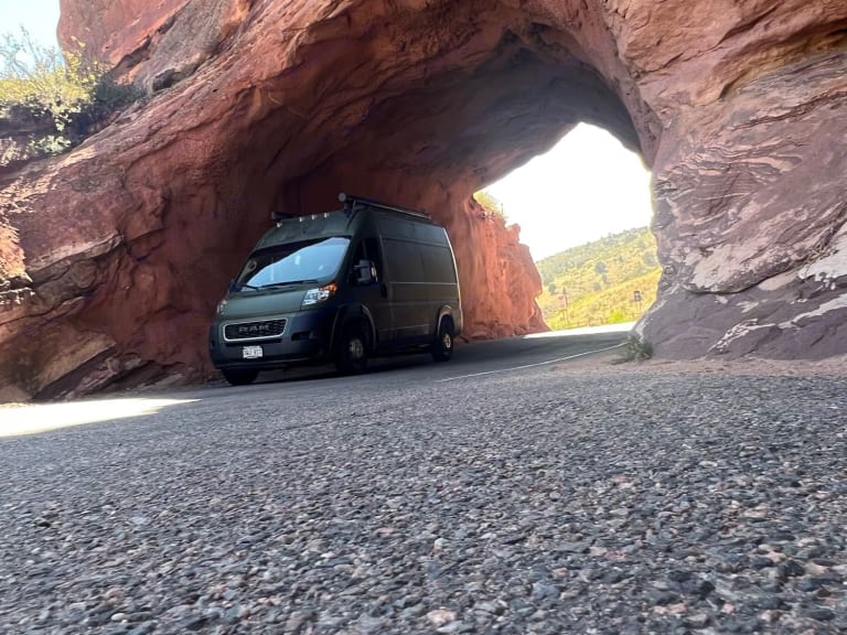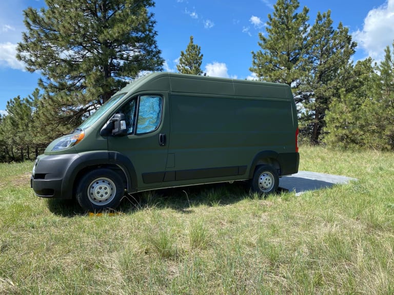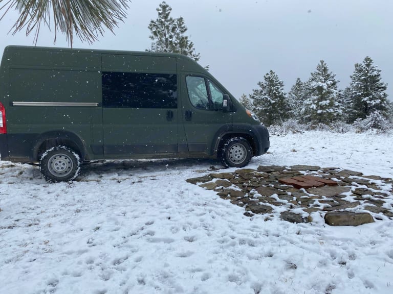 Rustic meets chic. This custom built Ram Promaster has just enough conveniences to make roughing it enjoyable without making you feel guilty about getting it dirty. High roof model, 6”2’ can comfortably stand inside with no slouching necessary! Short Queen size 5 inch memory foam bed for those of us that can’t sleep on the hard ground anymore, or who just enjoy the simple conveniences. Large under bed garage area for all your gear, kitchenette area, separated from the bed with actual whiskey staves, an electric faucet for water and a fold out table for extra meal prep area or to use if the weather outside keeps you inside. Also included is a storage bench that can be used for extra seating or as a step to get into the bed if needed. Solar power will ensure all your electronics are charged and ready to go. We kept the build simple to ensure nature is still enjoyed which is the whole point!