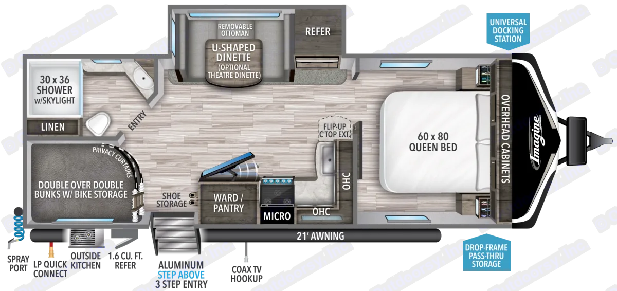 Power awning is nearly the entire length of the trailer. Indoor and outdoor speakers for the AM/FM/CD player or Bluetooth to connect your phone. Power tongue jack makes hookup a breeze. Anti-sway, weight distributing hitch comes as part of the rental. Also has an outdoor shower hookup with both hot and cold water. (8 gallon hot water heater-largest in class) What's includedComes equipped with all you will need for your trip. Cookware, dishes, glasses, coffee mugs, silverware, towels, bedding and games and a tv with DVD player for a rainy afternoon. All you need is something to wear and something to cook. (Marshmallow roasting sticks included!) Or trailer is equipped with an outdoor kitchen. RecommendationsPerfect for trailer campsites from the mountains to hanging at the lake. So many beautiful places to visit in Colorado, it's hard to pick a favorite. Dry camping or full hookups whatever you choose.