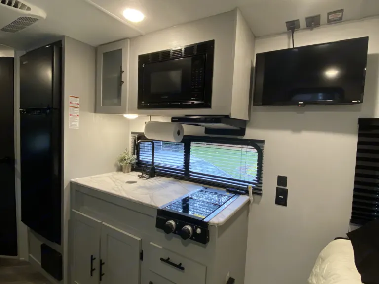 This is a brand new 2021 travel trailer from forest river that can be towed by any vehicle with a towing capacity of 5000lbs or higher. It has the potential to sleep up to 8 people, I would suggest 6 at the most for comfort. Full fridge, bathroom with large RV shower and sink, entire kitchen, outdoor griddle and additional external shower for washing kayaks, dogs, etc.!What's includedFresh linens, camping chairs, s’mores goodies, Keurig or Mr. Coffee, etc!RecommendationsState parks are always a great idea!Other things to noteI have a generator for rent for boondockers!