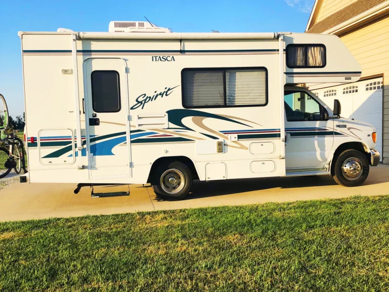 The Vagabond even though he's mature at 20 yrs he has been kept in pristine condition with less than 66,000 mi. New flooring installed Aug 2021. Dinette/bed sleeps 1 adult or 2 small children. Sofa/bed sleeps 1 adult or 2 children these are twin size. Overhead queen bed sleeps 2 adults with privacy curtain. Watch TV or movies while laying in bed or sitting below. Outdoor entertainment system with aux and Bluetooth. Day/night pleated window shades. Bathroom has a large medicine cabinet and closet. Kitchen pantry holds your favorite spices, oils, and boxed or canned foods securely. Lots of cabinet storage for essentials. We have stacking blocks for leveling. RV Includes: cleaning supplies, coffee pot, toaster, pot holders, slotted spoon, peeler, scissors, cutting board, measuring cup/spoons, flatware, plates, glasses, cups, paper towels, toilet paper, broom, coat hangers & vacuum cleaner. I don't provide sheets or towels only mattress covers. One pet with $75 non-refundable fee. Dog must be under 30lbs and pre-approved. Sorry no cats. Can't wait to get you on the road!What's includedstacking blocks for leveling, outside rug, cleaning supplies, coffee pot, toaster, pot holders, slotted spoon, peeler, scissors, cutting board, measuring cup/spoons, assorted kitchen tools, flatware, plates, glasses, cups, paper towels, toilet paper, broom, coat hangers & vacuum cleaner and two small tables. Large outdoor carpet. Other things to noteI believe it gets 10-12 MPG. Just a reminder this is a non-smoking, vaping, chewing, spitting rig. Please just one dog. It's too small for anymore fur babies. Please dump the black and gray water at the RV park before returning it. Other places are Derby Sewer Dept on K15 & Gander RV in Wichita both free.