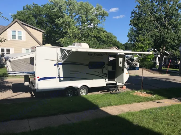 2011 Jay Feather X21M. This is the perfect camper to get started in. The benefit of a hybrid camper is you are able to experience sleeping outside in the canvas sided queen beds on either end and have your living space more like glamping. Features two tent ends (ends setup in under 2 minutes), each with queen size bedding that provide comfortable sleeping for 2 adults or 3-4 kids on Each END. Sofa and dinette both add Additional sleeping availability. Roomy refrigerator/freezer, microwave and 4 burner stove and oven. Coffee maker & toaster can be found in the cabinets. Comes equipped with 2 - 20 LB propane tanks to run the stove, furnace, heat the water when not on electric, and run the fridge when not on electric so it remains ICE Cold even while you're traveling down the road or dry camping. Bathroom equipped with shower and toilet. TV/DVD for rainy days and a CD/radio with outside speakers so you can listen to your favorite tunes or sporting event. The awning provides shade on sunny days. We will provide 2 camping chairs with cup holders to relax in. Very clean and Smoke free. With the dining area/couch slide, this camper is very spacious. This camper has been the perfect little getaway for our family, and we hope it can be that for you too.What's includedWe provide 2 Camping Chairs, Kitchen Items (cutlery, paper towel, a few pots and pans), Bathroom RV toilet paper, outdoor rugOther things to noteWe ask that if you have children, please go over the rules of the RV toilet. Unfortunately we have had numerous guests with children overuse the TP and it will clog the RV toilet. Minimal TP is encouraged. If the RV is clogged, a $25 charge will be applied at the end of the trip.