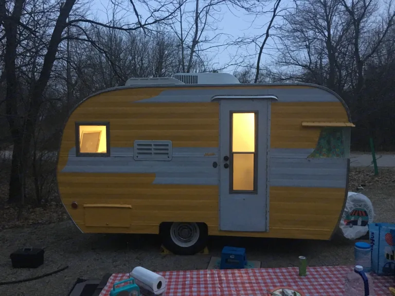 Vintage camper! Updated and completely re-done interior. Refrigerator, propane oven and stove, air conditioner and heat! Extremely comfortable top-of-the-line memory foam mattress. All cutlery and just about everything you need is included.
