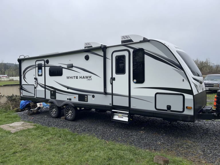 Come enjoy the great outdoors in a brand new 2024 jayco white hawk travel trailer. Private queen bedroom, dinette turns into a large bed, also 2 reclining chairs. This beautiful trailer has indoor and outdoor speakers, a gas stove, microwave and fridge. Toilet paper, cookware, fresh sheets, towels and rags included!What's included• Dish soap