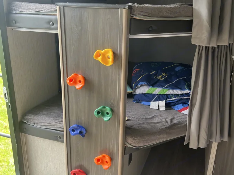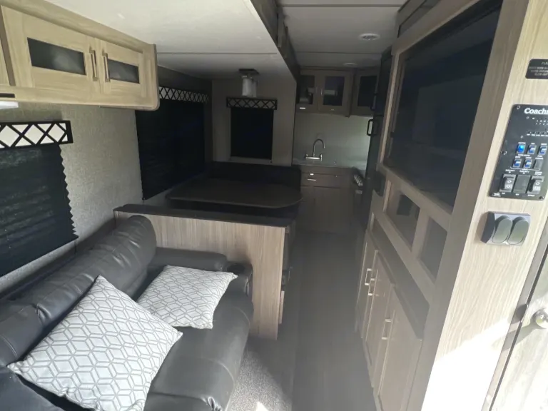 Beautiful new camper only been used 5 times still smells new. We provide towels blankets sheets dishes paper towel toilet paper. Has a nice outdoor and indoor speaker system with blue tooth. Has a nice kids bunk bed set up as well. This thing is luxury for sure What's includedComes with chairs cornhole board blankets towels paper towel toilet paper. Coffee pop and dishes to use.RecommendationsHave taken it to yogi bear and faster horses Other things to noteNo smoking on board. Would like to talk over any festivals they plan to have it taken to. This thing is pretty new like I said so just wanna protect my investment
