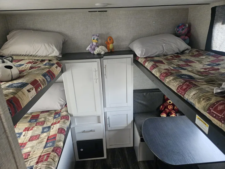 Great camper and hosts. We towed it to a beautiful mountain lake where the temperatures were hot during the day and cool at night. The camper a/c and vented heat made it so comfortable. The Slideout made it roomy and the back bunk room with an actual door was perfect for the friends we were with. It towed easily up and down the mountains with my F-150 with max trailer tow package. The hosts communicated very well with us throughout the process.
