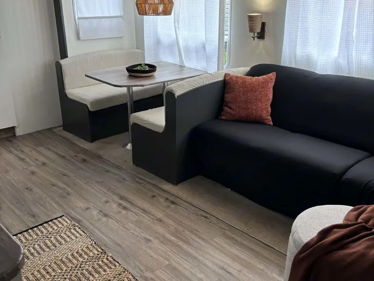 This newly renovated, pet-friendly trailer sleeps 8 for family adventures.
