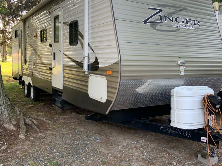 A two slide on a 31 footer travel trailer sleep 8 or 10 with children's Bunkroom with separate entretainment center with a slide for biger room also have a door to go outside true the bathroom also outside kitchen with the gas grill fridge nice led ligths this zinger is so sweet that's why I call it sweet zinger What's includedFresh linens pillows blankets (Generator) upon request two TVs dvd a couple movies 6 chairs gas grill coffe maker and paper plates cups extRecommendationsIndian river inlet ,frotier town ,holly lake campgrounds, big oaks , tall pines and a few moreOther things to noteI have a person to deliver it and set it up at separate cost do not let you vacations get not done just because your truck can not pull it