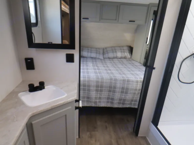 New, roomy RV, great for family fun. Sleeps 8, with bunk bed set and master queen bed. Other features include microwave and range, TV, huge bathroom, air conditioning, and sitting for 8. Exterior includes outdoor stove, sink, shower, refrigerator, and heated enclosed underbelly. Light weight, dry weight of 6,884 lbs, 35'8" long with one slide. Includes solar panel on roof to run refrigerator when not plugged in.For those new to RV'ing we have detailed instructions on how to use the RV including hookups and dumping/rinsing of the tanks. We will also go over these items during the pickup process.What's includedThe RV comes fully stocked - includes linens for beds, pillows, towels, dishes, cookware, cleaning supplies, outdoor sitting options, cooler, tp, paper towels, leveling equipment, and hook up supplies.All items will be cleaned and disinfected, ready to go when you pick up the RV.Propane tanks will be filled and ready to go. RecommendationsNeed a tow vehicle - you can find truck rentals for towing at Enterprise and Turo.com.Lots of great campgrounds less than an hour from pick-up location including: Atwood Lake, Teepee RV Camp, Wood's Tall Timber Lake, Bear Creek, Baylor Beach Park, Amish Country Campsite, Camp Trinity, Cozy Ridge Campground, Springwood Lake Campground, Leesville Lake South Fork, to name a few.Other things to noteNo smoking inside the camper. Camper to be left broom swept condition, surfaces wiped clean and gray & black tangs dumped and rinsed clean.