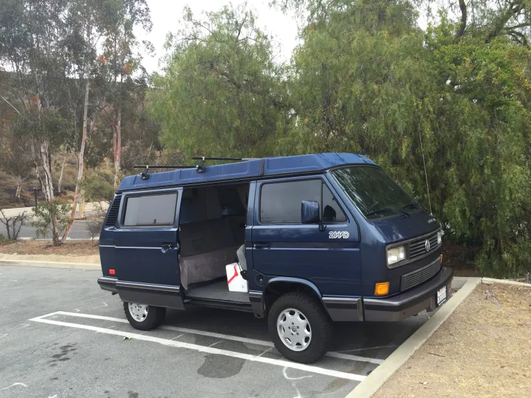You will be renting Ocean. A very classic Volkswagen Vanagon Multivan. Ocean has original paint and is a wonderful vehicle that will bring you good vibes and a mental serenity that few other cars can provide. It seats up to 5 people and can sleep 4 comfortably. Two in the lower bed, two in the iconic Volkswagen Westfalia PopTop bed. This van does not have the built in Kitchen and Sink so it allows for more storage. A camp stove is provided with a set of cooking and eating utensils. Ocean is a four speed manual transmission van. Just bring your sleeping bags and a sense of adventure and find your way to California and find some great camping, beaches, mountains and historic sites.