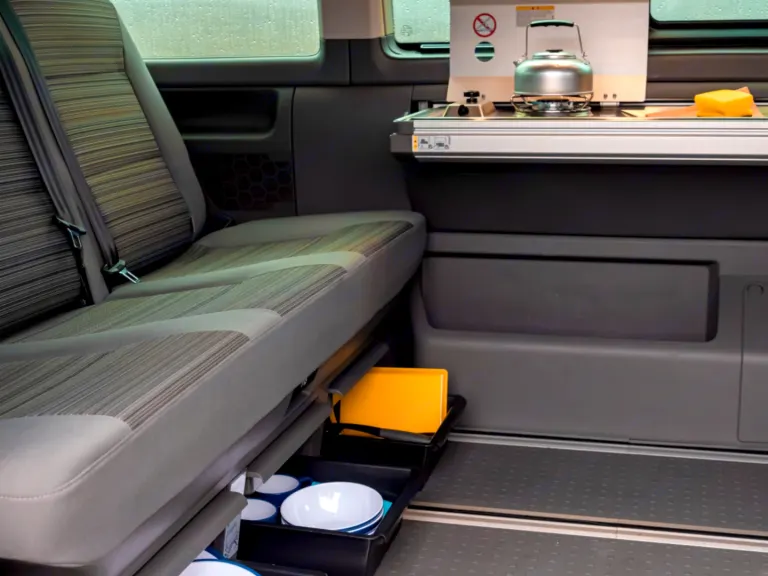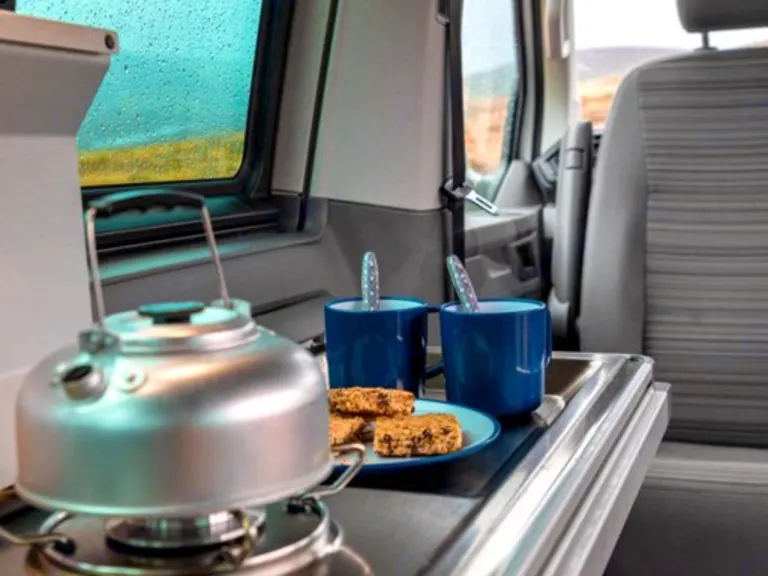 • Sleeps 4, seats 5, with a pop-up roof and handy mini-kitchen for comfort.