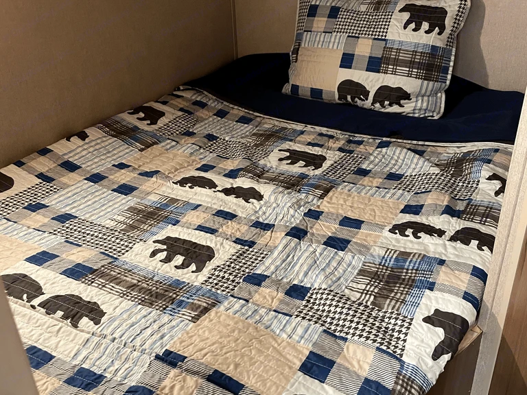 Well maintained and spacious camper, perfect for 6-10 people (6 comfortably, 10 max). Everything that you would need for a perfect nature getaway is included (other than food, drink, and personal hygiene items). We provide the paper plates and products and washable dishes. Bedding and towels are provided as well as some cleaning supplies and bug spray. Camp chairs and outdoor rug included, along with corn hole! Let our home away from home be your next stress-free camping vacation! Available for pick-up or delivery with flexible options, just let us know!Notable Features: