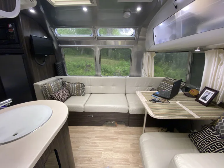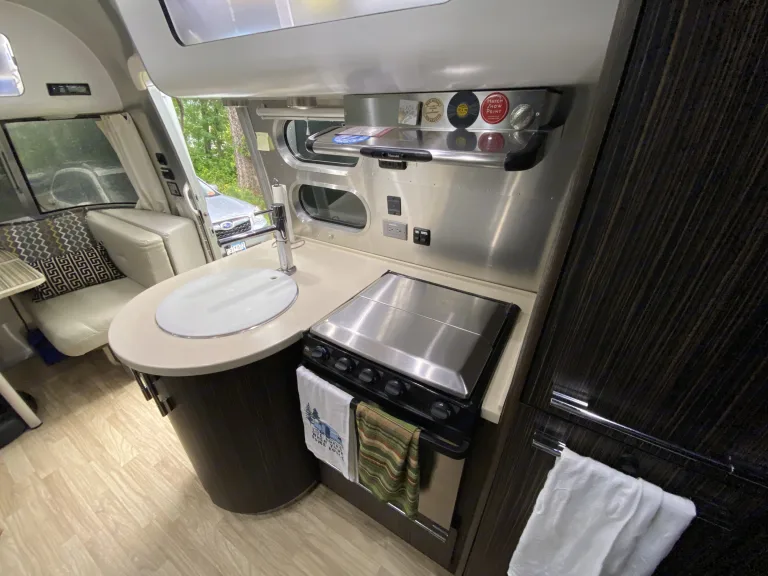 Meticulously maintained Airstream International - Beautiful, well-built, iconic, timeless. It is the modern choice in travel trailers! High contrast aluminum, Ultraleather, Corian, "vista view" and panoramic windows, truly bringing the outside in.Airstreams are easy to tow, are aerodynamic, light and downright beautiful. This signature edition has colors that pop off the neutrals, and shiny polished aluminum interior... with the lights set low at night, it is easy to imagine that you are traveling effortless through space.Don't be surprised to hear "Love your Airstream!" while you lounge around camp. People are drawn to them, and love to engage you.What's includedIn the kitchen you’ll find:
