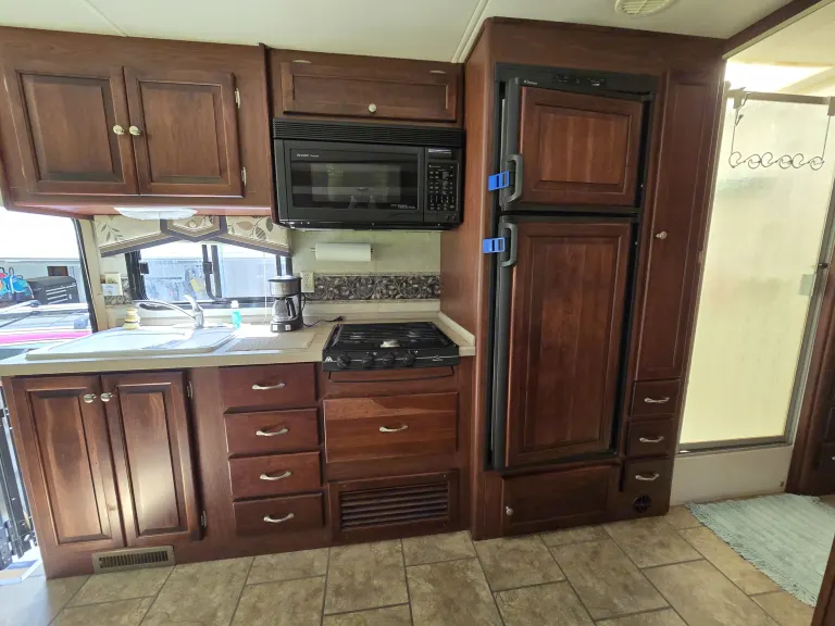 Cozy, comfortable, and clean. Hit the road and stay in amazing places in our house on wheels. We welcome you with a fully equipped mini kitchen, with a spacious refrigerator, clean linens, plenty of room for food storage, and a comfortable bed! Your small furry friends are welcome to join your adventure, too! What's includedFresh linens, kitchen utensils, cookware, microwave/convection oven.4-bike rack available at extra cost. Please contact us after booking to arrange. Recommendations• Get away to the mountains or the coast and enjoy the beauty of nature with the comforts of home!