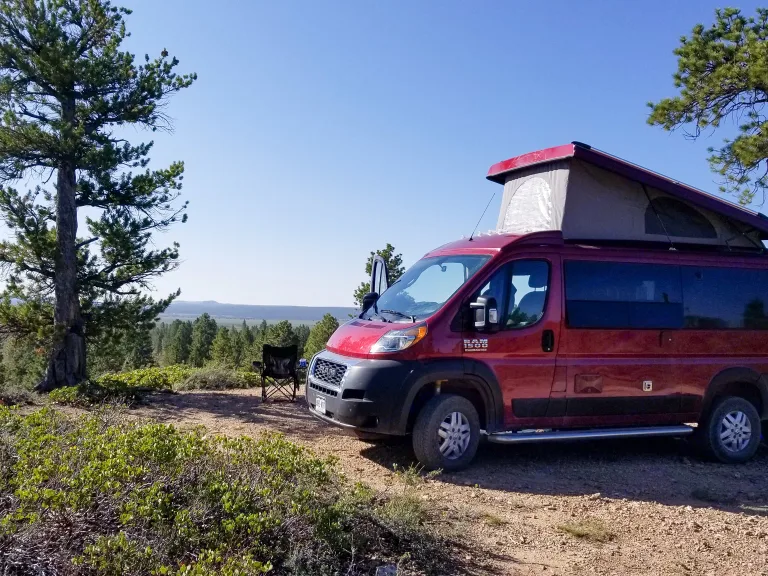 Want to camp all alone on a mountain rim at 10,000' feet? You can do that! How about under a massive wall of red sandstone in the middle of nowhere in Utah? You can do that too!This rig is the perfect size for an adventurous couple or family. Sleeps four with two adults down below and up to two kids (or one adult) in the airy pop-top and there are screens all around to let the air in and the bugs out. Unlike most campervans of this type, this rig has a 3 inch lift for more clearance, skid plates which will allow you to get into more remote spots off the beaten path, and upgraded suspension (but it's NOT 4X4 road capable!).Equipped with a 16 gallon water tank, very capable fridge/freezer combo, interior sink and induction stove plus an additional outdoor 2 burner gas cooktop, full kitchen kit, and table, you can set up your basecamp and spend your time exploring the neighborhood. Fully insulated with a powerful heating unit, it's also a good winter rig for a ski road trip or some winter desert exploration.