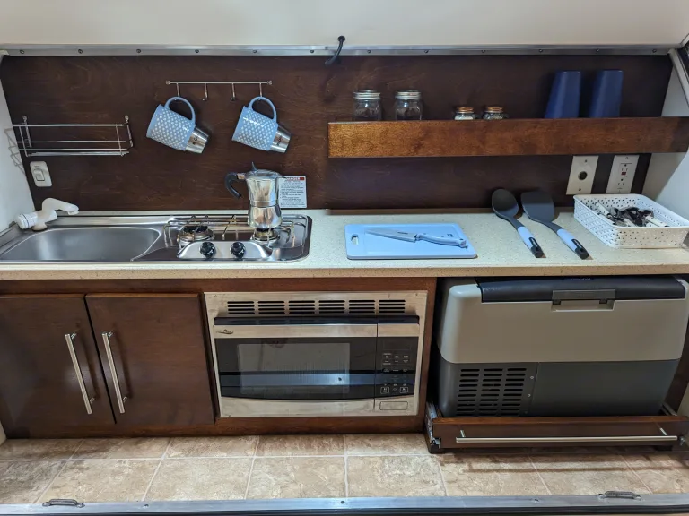 We rent out the Teal Drop with our son Dante. He's studying business in college and renting out our RV as his first venture. He likes delighting our renters with small surprises that he changes all the time. It might be a few chocolates or cookies for your morning coffee. Check the mason jars.