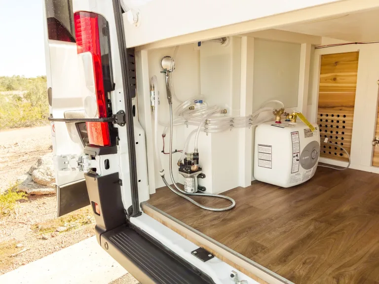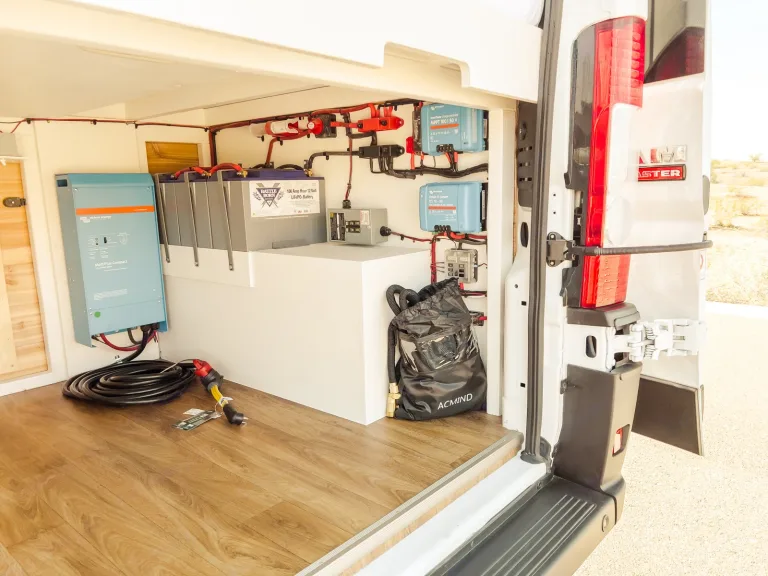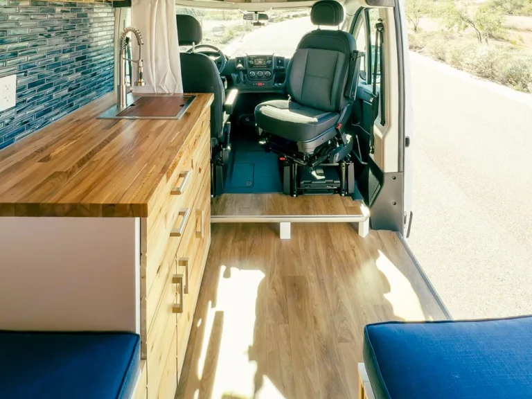 What's includedAdditional features include:- 400 watt solar system w/ Victron solar controller- 2000 watt Victron inverter- 200 ah AGM battery system- Finished divider with dual storage cubbies- Dometic CFX3 75L Fridge Unit- Gooseneck faucet- Stainless steel sink- Custom upholstered cushions- Overhead cabinetry- Stowaway 2-burner stove- Intake/outtake roof fan- 25 gallon water tank- LED ambient lighting & kitchen dome lighting- Butcher block kitchenette- 110 AC outlets (3)- Custom vinyl flooring- Custom tile backsplash- Victron dc to dc isolator/charger- Outdoor shower- Custom window installationHOP IN AND GO