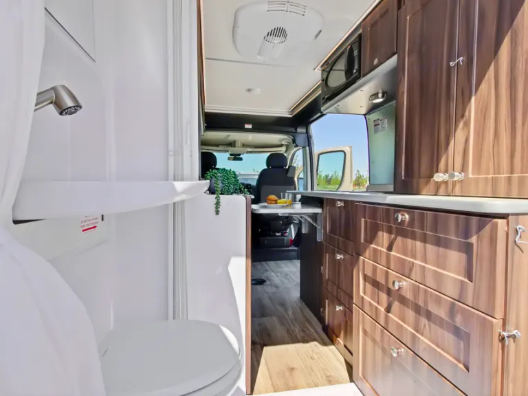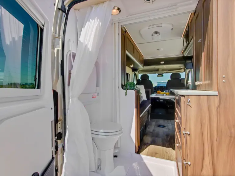 All our vans have Actual flushable toilets. We do NOT have jerry-rig RV vans. We find the top-of-the-line technology and features built by professionals so you can enjoy all the bells and whistles!